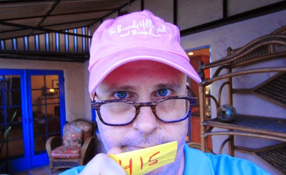 Day 431 / Hat 431: Pink bucket hat with four-panel crown, white pompom on top and the name "Lester Lanin" screen printed in blue script on the brim. Interior tag reads: "Made in USA." Fabrication unknown but likely cotton or a cotton/poly blend.